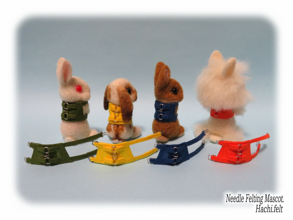 4月頃から「お出かけうさぎ」に着せるハーネスを色々試作してました。