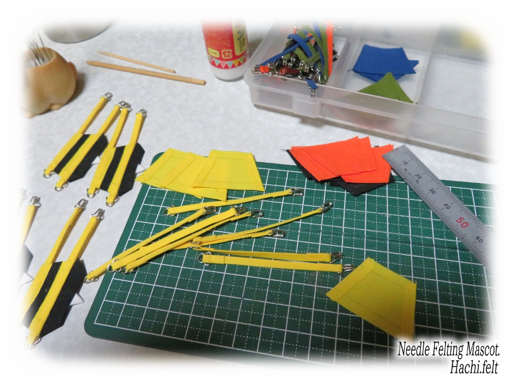 材料は布ですけど縫う訳ではなくて基本的には手芸用ボンドで接着です。