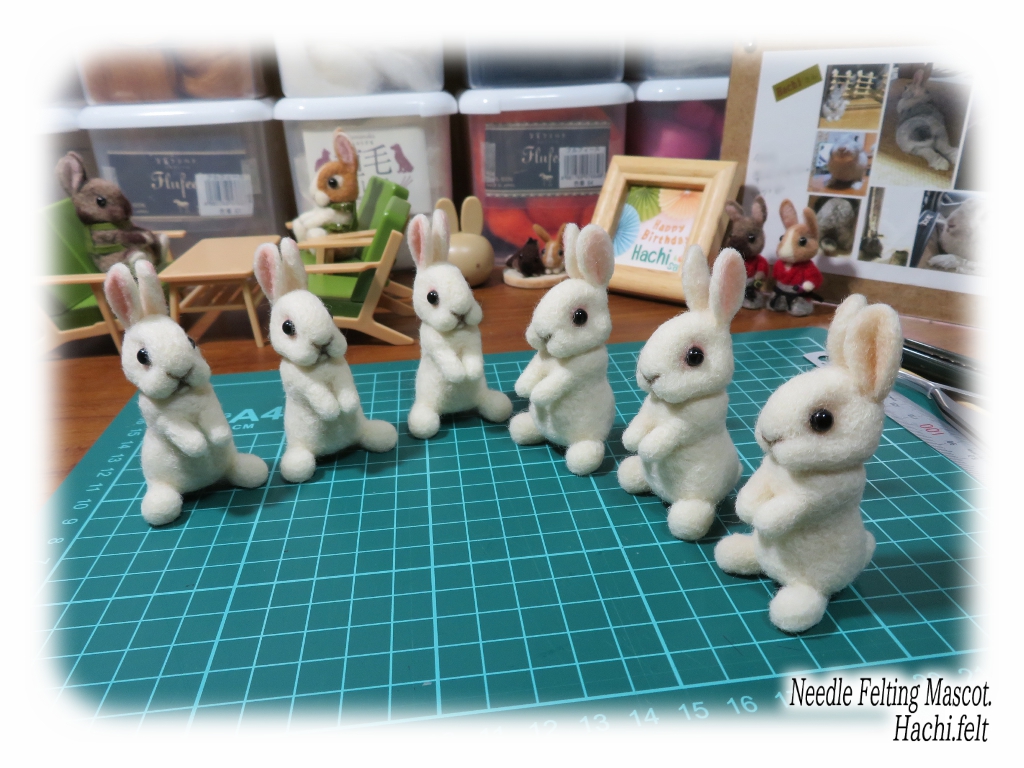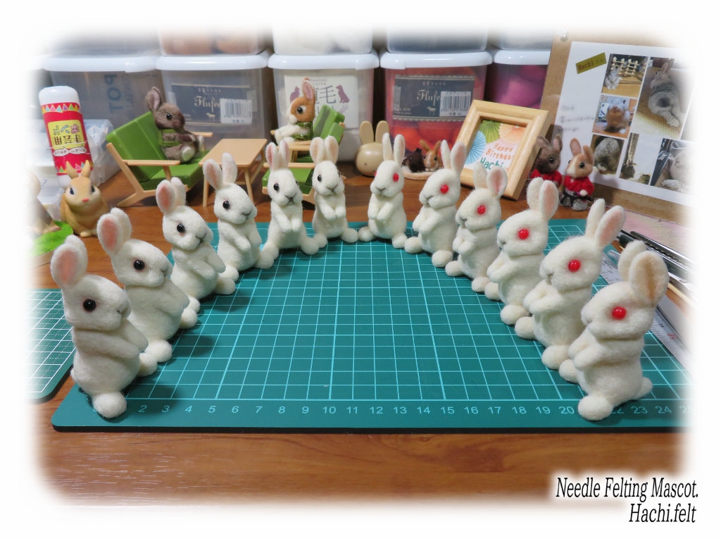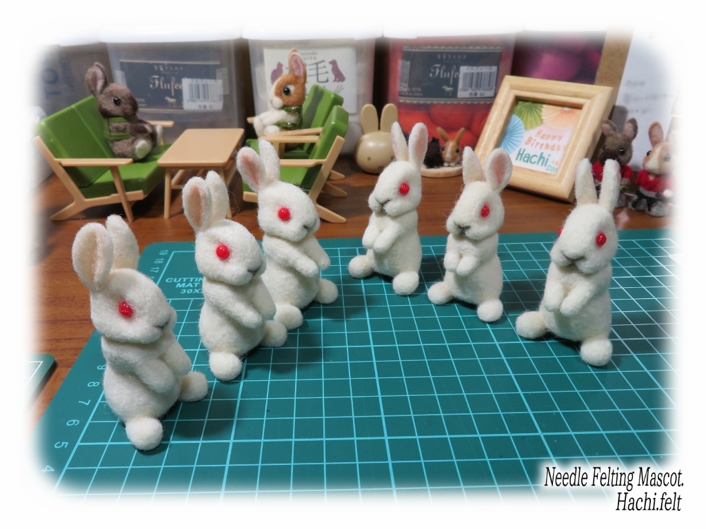 イベント用作品② 制作記 X Facebook LINE Pinterest コピー 2022.07.20 白うさぎ、黒目&赤目⚫⚫🔴🔴 黒目ちゃん🐰 赤目ちゃん🐰 どど~ん☆っていっぱい作ってますけど、このうち半分は違う子に派生させる予定。 ハーネスの方も着々と進んでます🦺 ミニ八兵衛 何か僕たちサボってるみたいやん! ミニ茶々丸 うさぎをダメにするソファーや☆