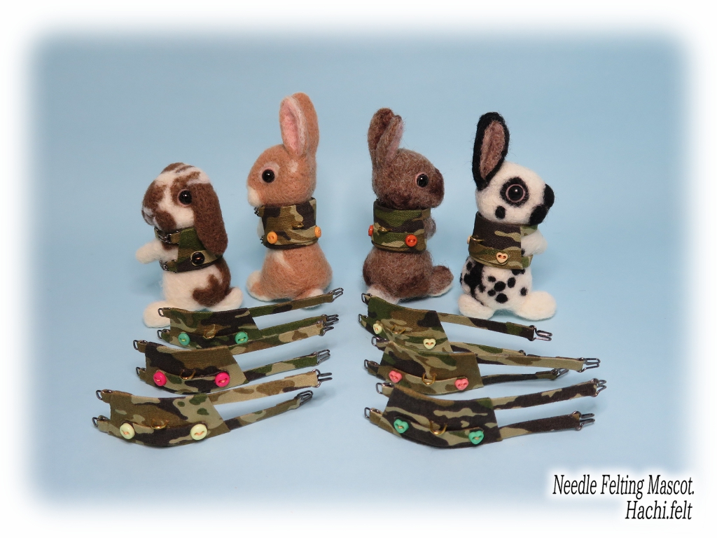 そして今回の新色、迷彩カラーです☆ずっと作りたかった迷彩ハーネスなんですが、柄が細かくて気に入ったパターンってのがなかなか見つからなくて作れなかったのです。生地を山ほど扱ってる手芸店でも無くて、やっと見つけたのは100均の端切れコーナー✨でも一枚しかなかった。それからマメにチェックしてるけど、この端切れは見つからない💦