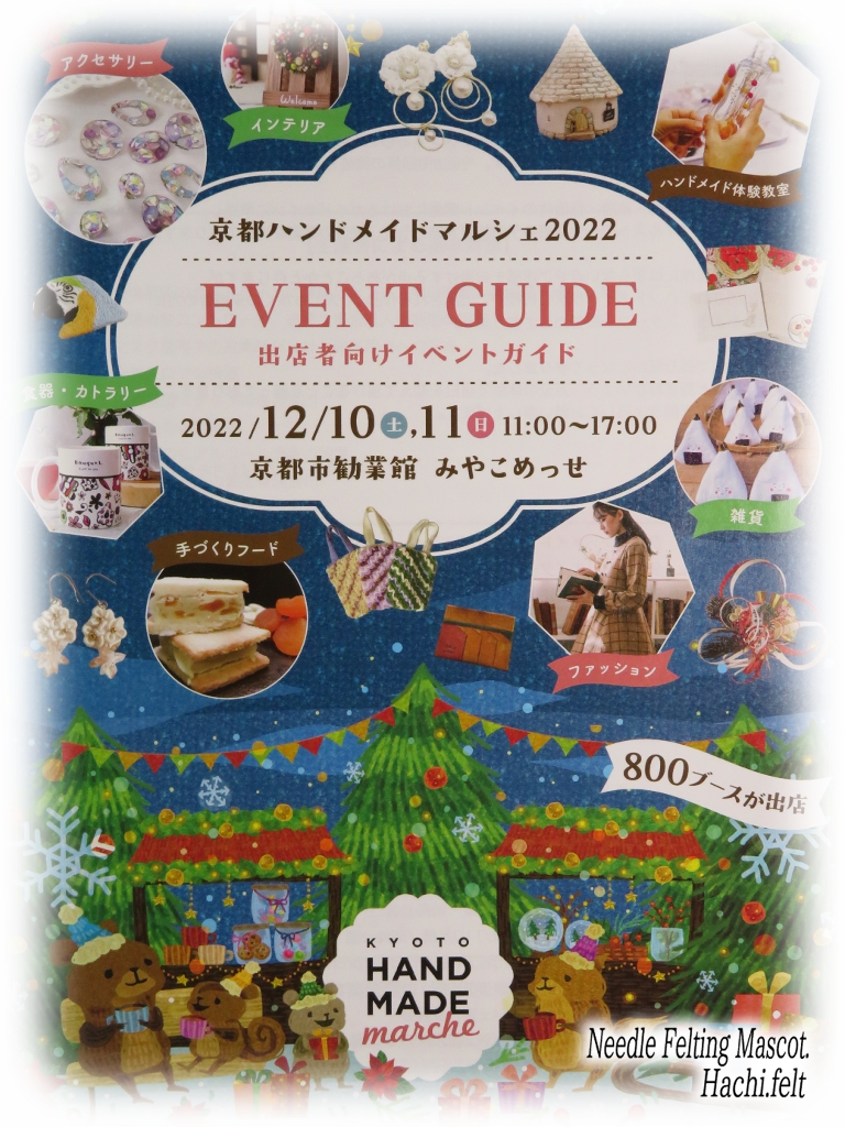 京都ハンドメイドマルシェ、2022/12/10㈯,11㈰。場所は「京都勧業館みやこめっせ」両日共に11:00~17:00までとなります。
