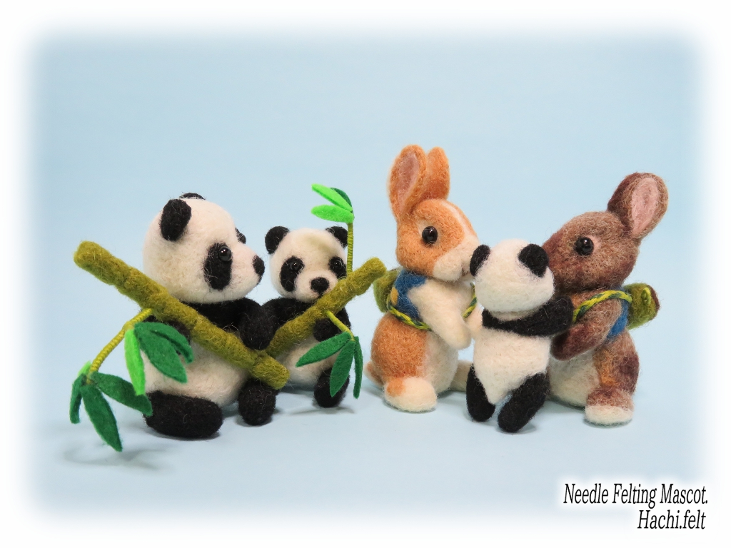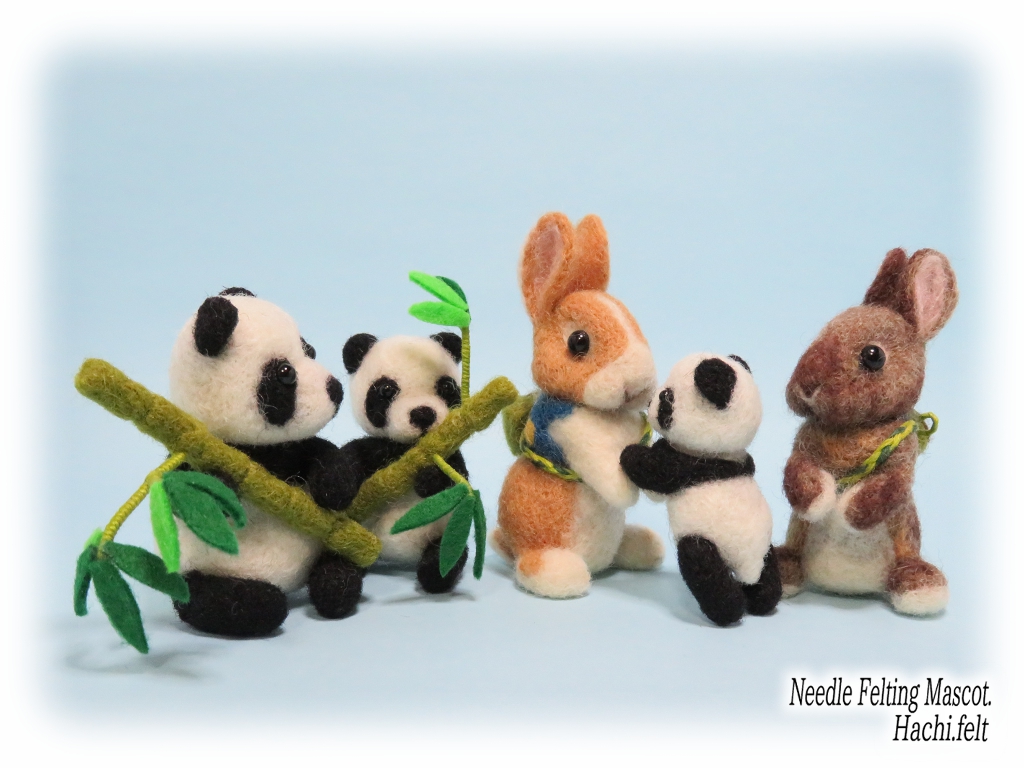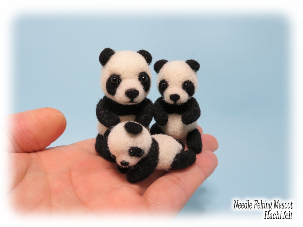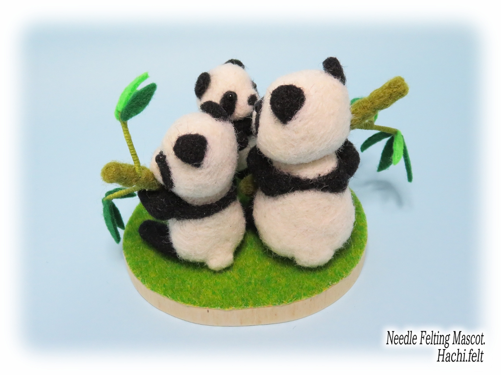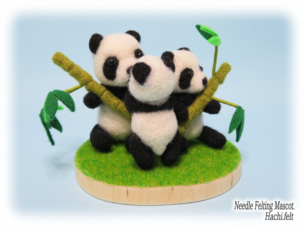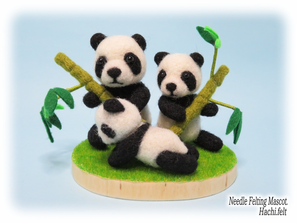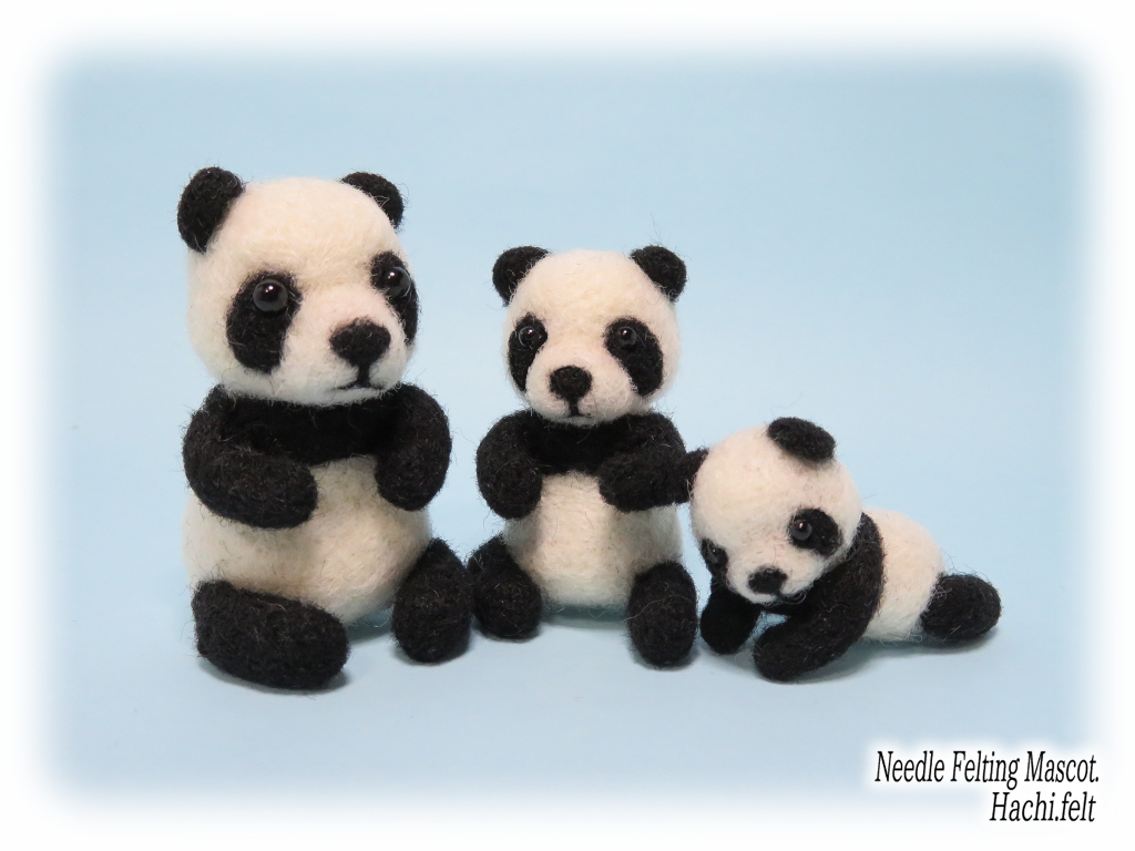 たまにはうさぎ以外の子、パンダ🐼最初は一頭だけ作ろうと思ったんですけど何か三頭に☆