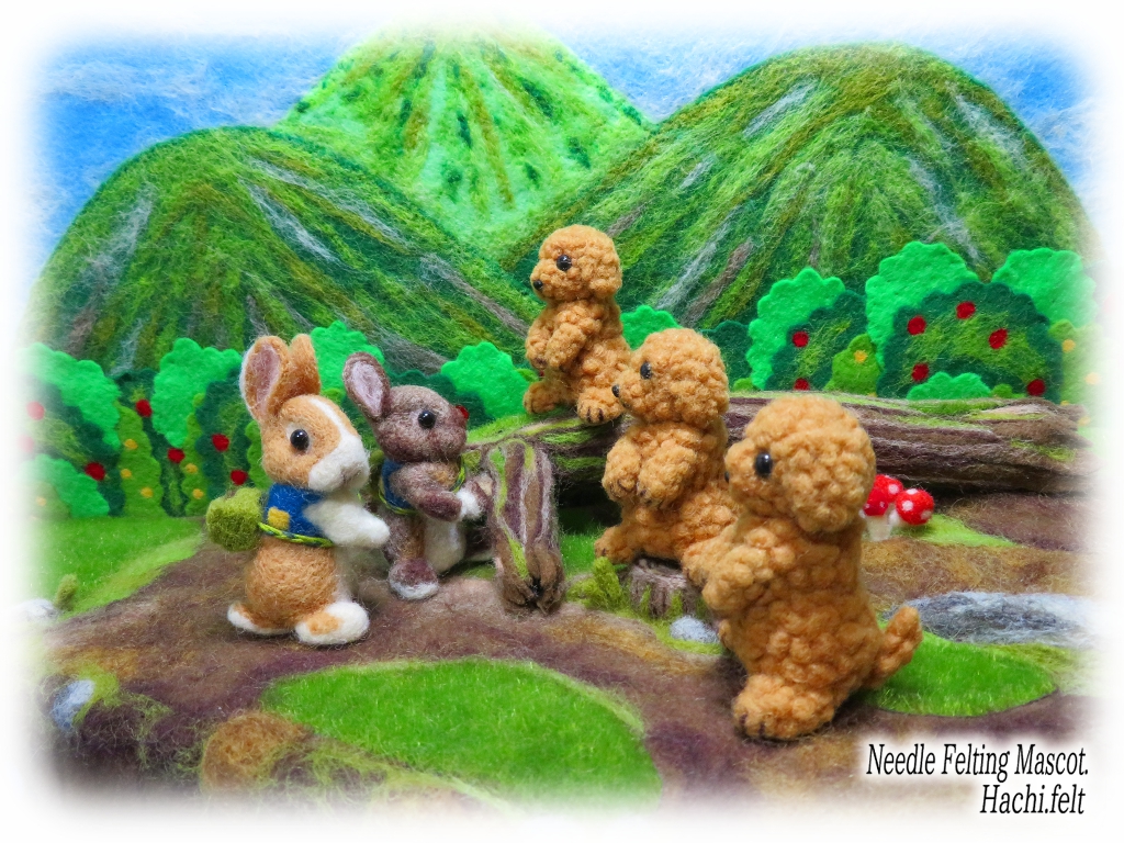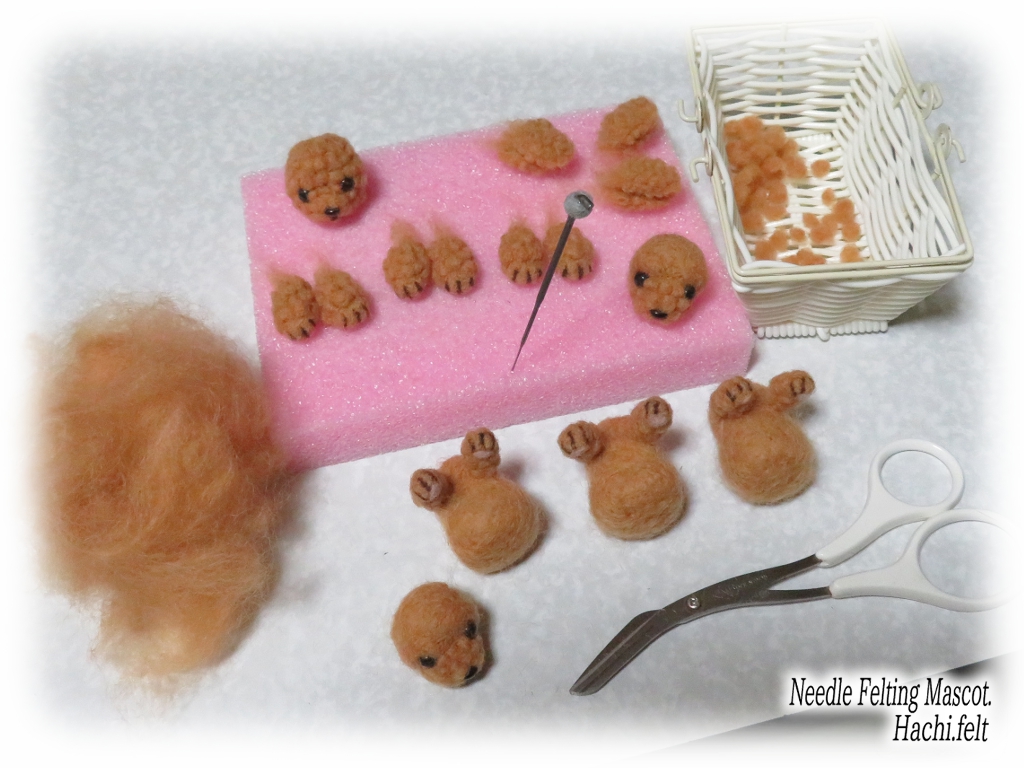 顔回りのモコモコの付き方で表情が色々変わってしまうのが面白いのです。でも1モコ2モコと1つずつチクチクしていくので単色でもうさぎより結構手間はかかりますね。