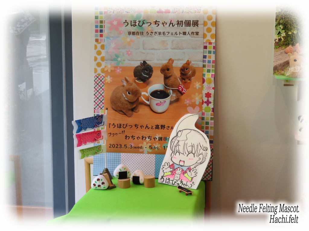 2023年5月3日~5日の3日間、作家友達うほびっちゃんの個展『うほびっちゃんと高野さん達のフフゥ~!!わちゃわちゃ展示会 in Kyoto』が開催されました。今回私はそのお手伝い💪☆やりたい事がたくさんあるという事で、何回かの現地打ち合わせもあり~ので準備も色々と忙しかったけれども無事終了いたしました👏