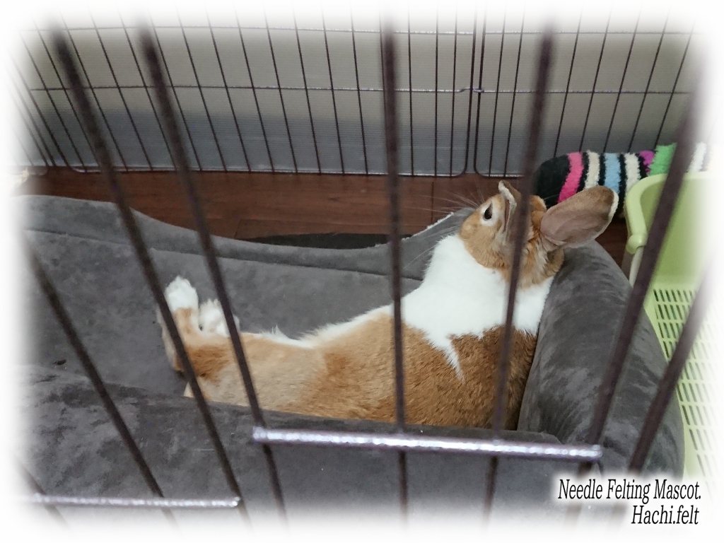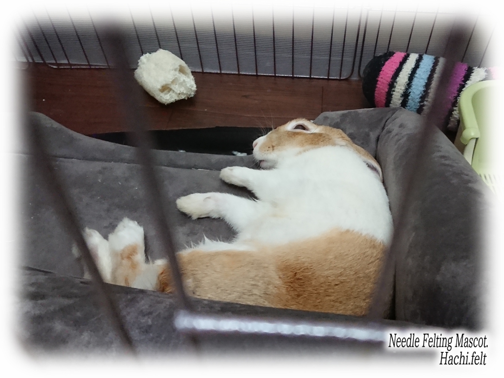 八ちゃんも初日からケージの前で転がって寝るとか結構大胆な事も。行動は活発なのでケージ内や回りをピョンピョン動いてました。