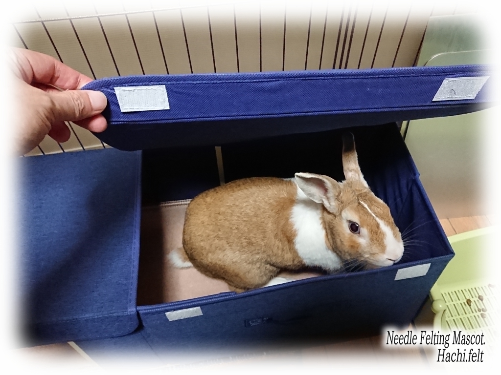 BOX型なら入るかなと、身体の大きい八ちゃんに合わせてストレージBOXを二つ繋いでハウスを作ってあげました。このBOXは気に入ってくれた様で最後まで破壊せず使ってくれました。