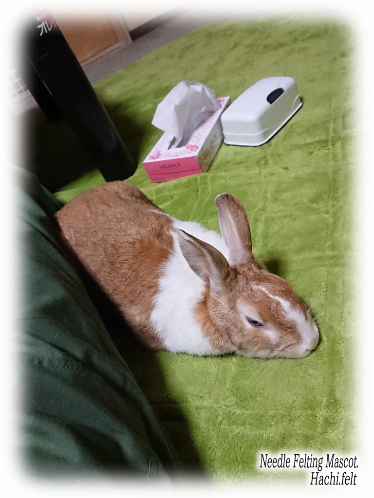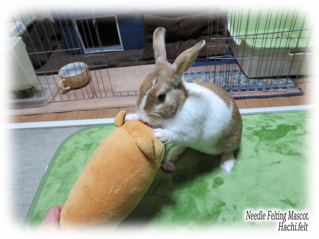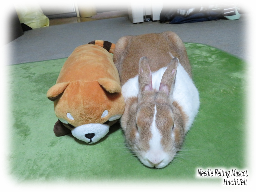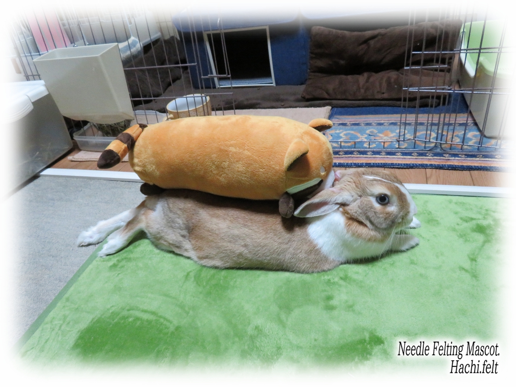 実はレッサー君は二匹居ました。破壊兎の八ちゃん、絶対すぐボロボロにするだろうなと予備のレッサー君を用意してました。でも結構振り回したりマウントとったりして遊んでましたけどボロボロにはしなかった。シッポだけは取っちゃったけどね。