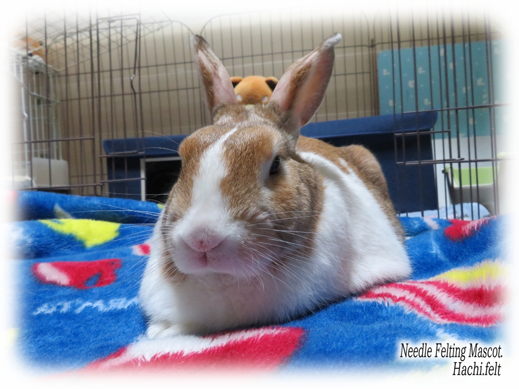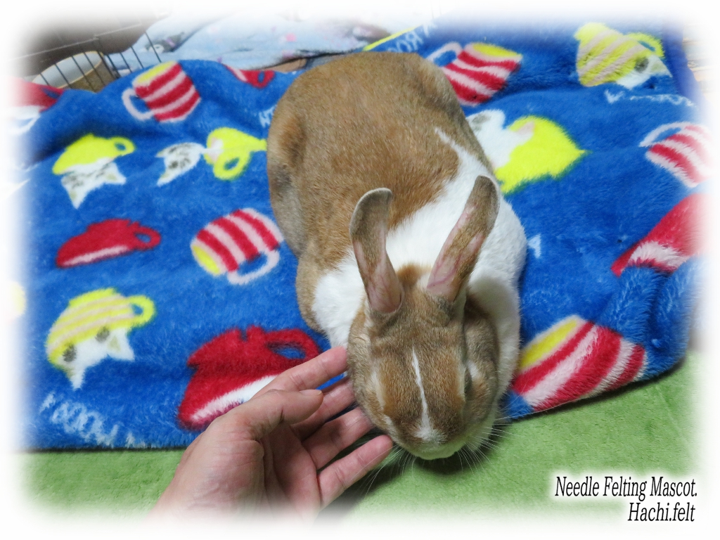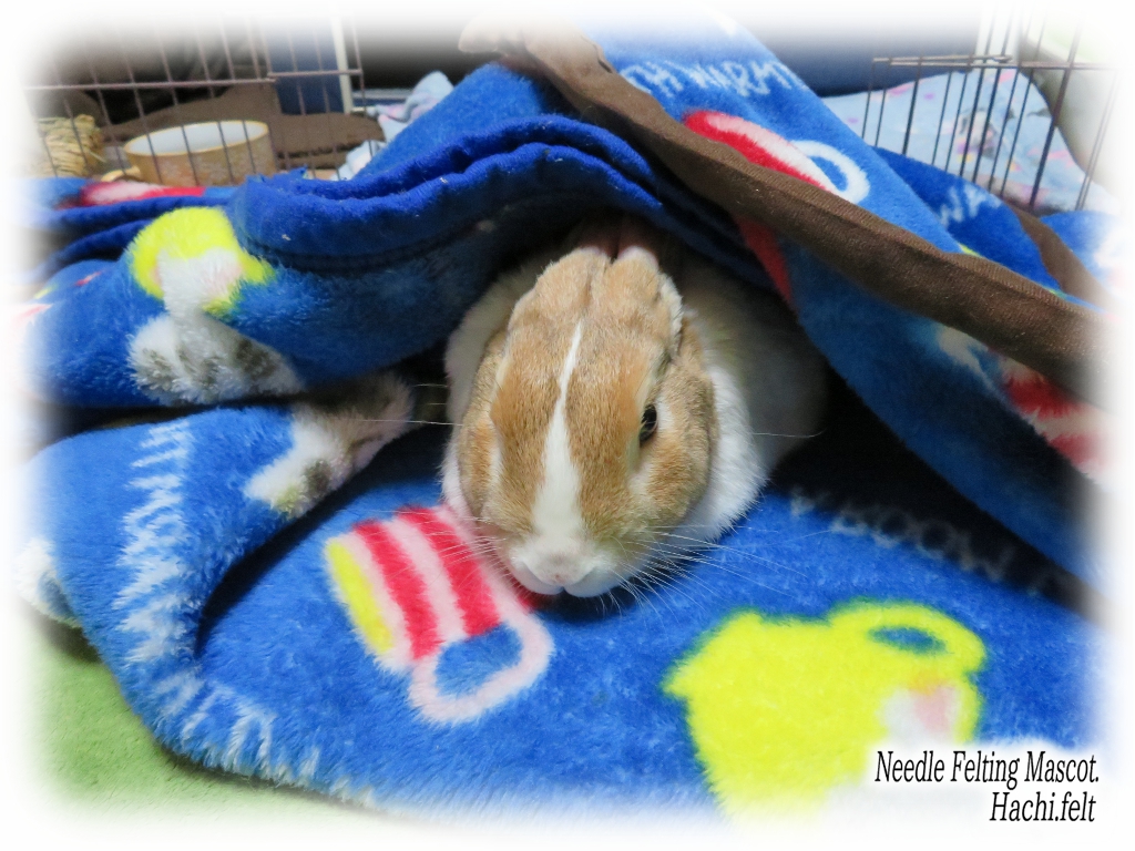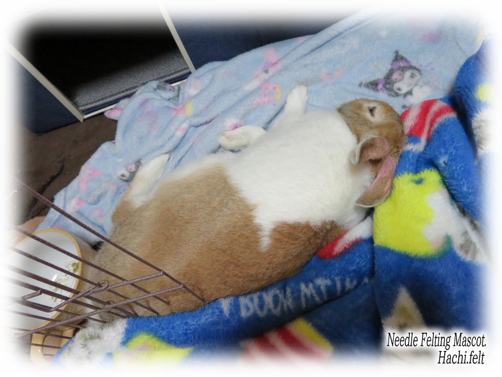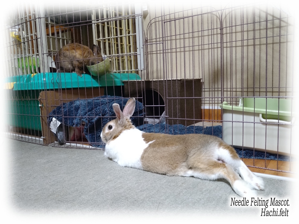 茶々丸が気に入って使っていた毛布を半分形見分けして貰った八ちゃん。茶々丸の匂いがいっぱいついてる、柵の出入口に敷いてあげてました。