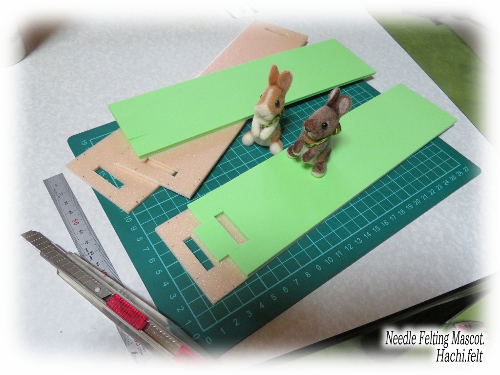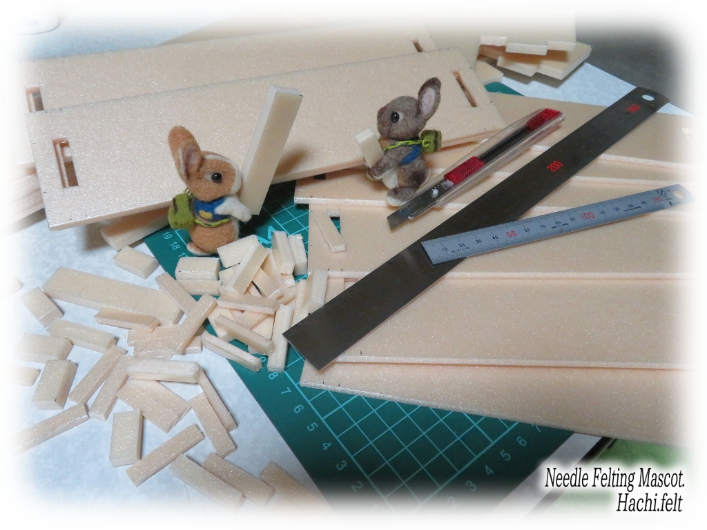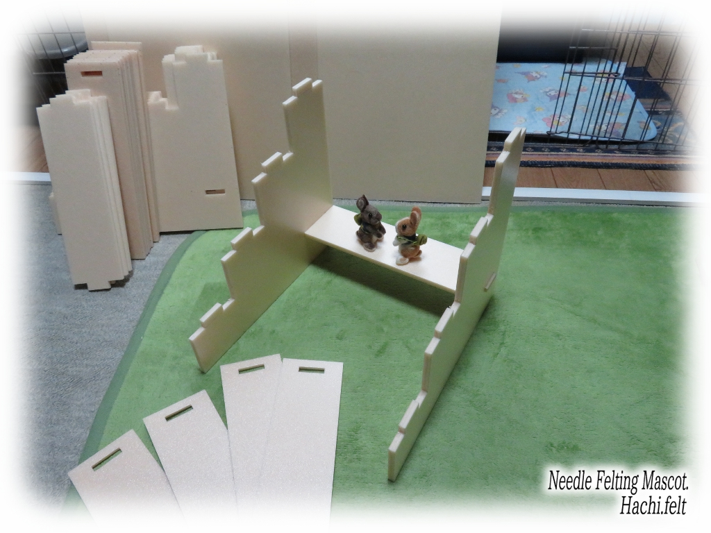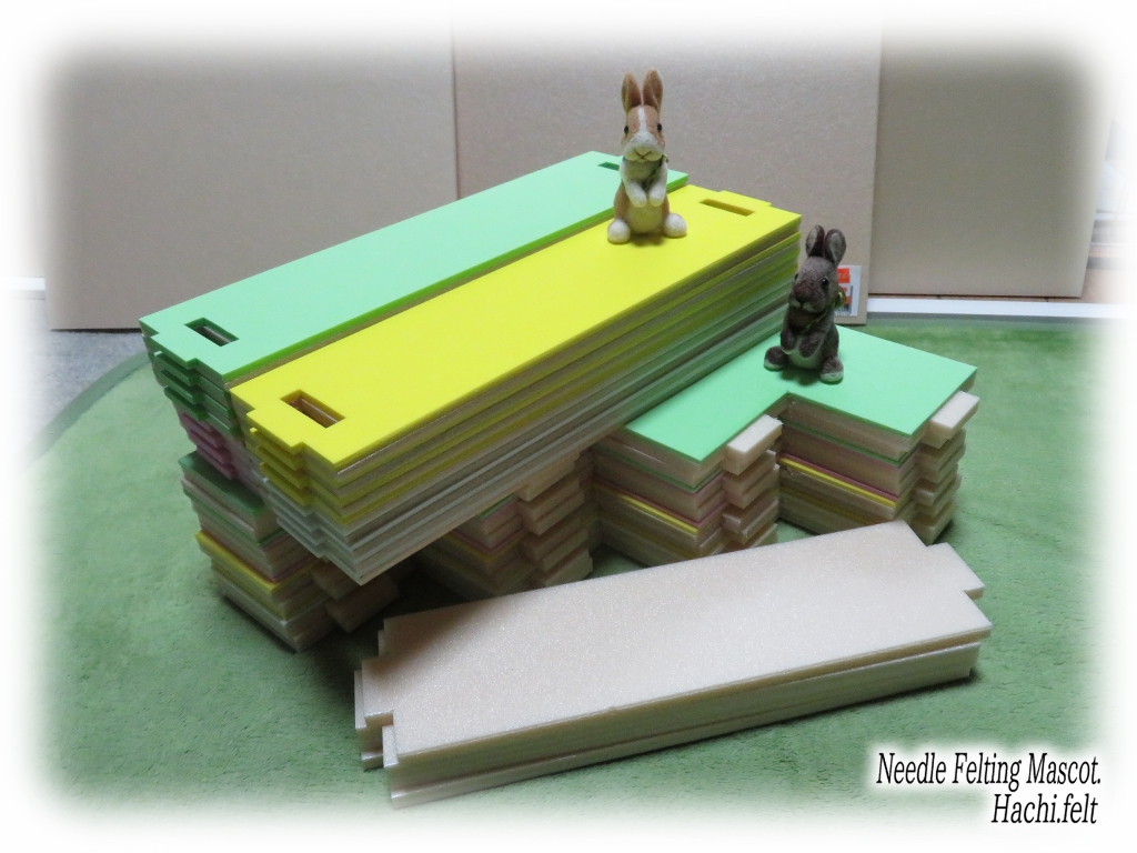スチロールボード☆強度だいじょぶ?って感じですけど乗せるのが羊毛作品だし、ある程度の厚みがあれば強度は十分だと思う。それに何と言ってもカッターで切り出しやすい‼そして軽い✨
