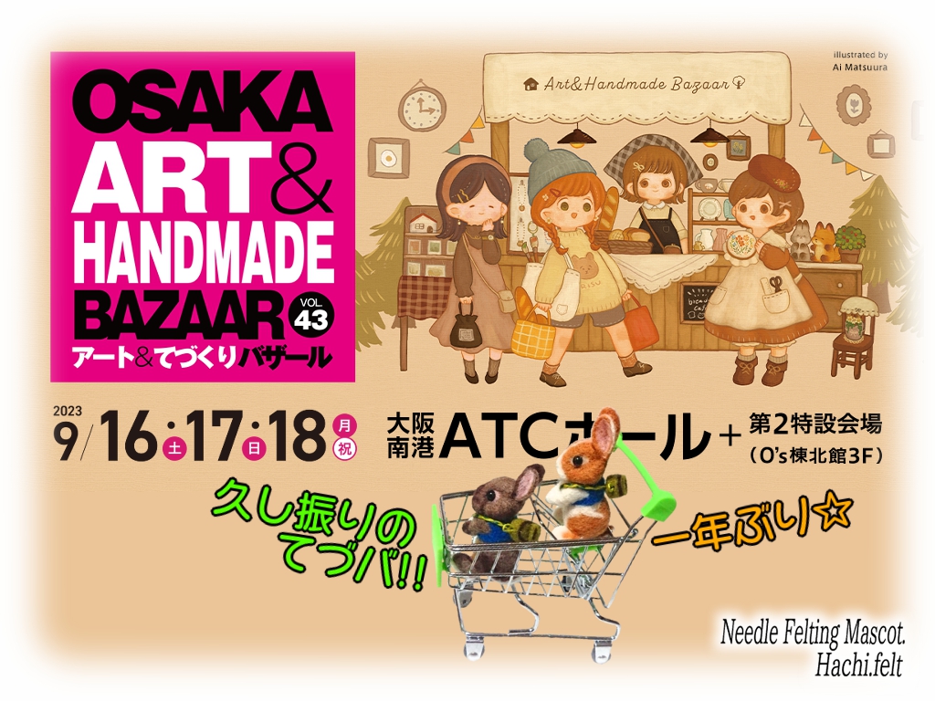 2023/09/16(土)~18(月祝)に開催されるOSAKAアート&てづくりバザール。Hachi.feltは18日(月祝)のみ参加、運営から書類とブースNo.が届きました。