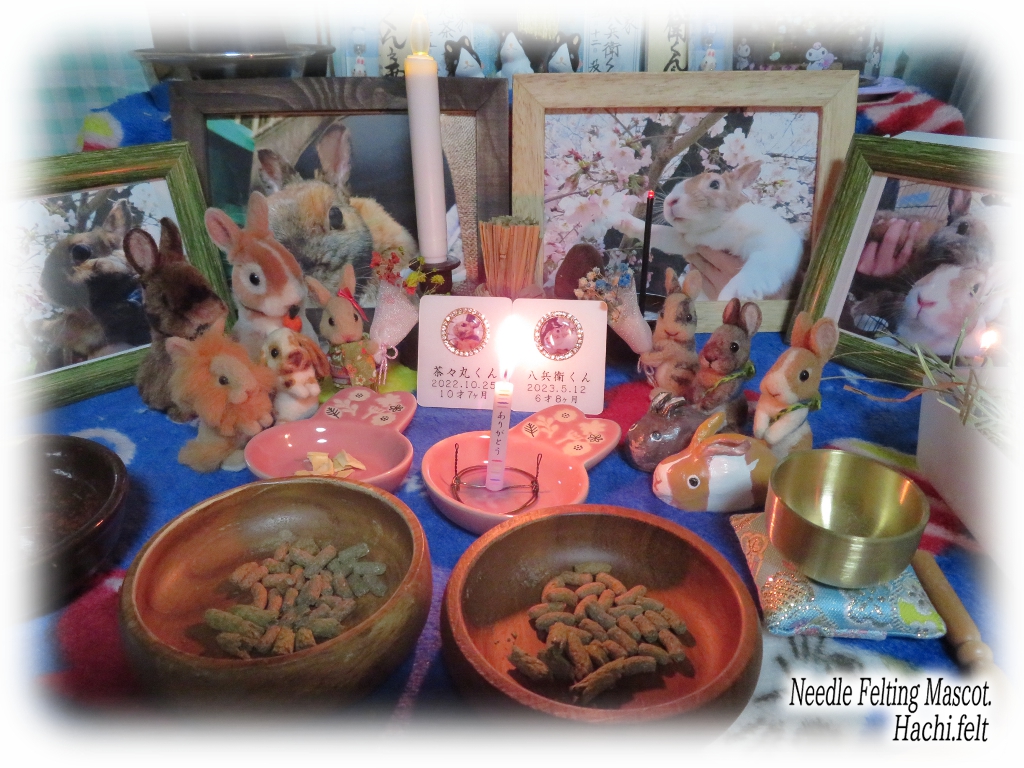 とぶうさ版の茶々&八はその場所で、ミニ茶々&八が出張中も祭壇守ってくれてますよ✨