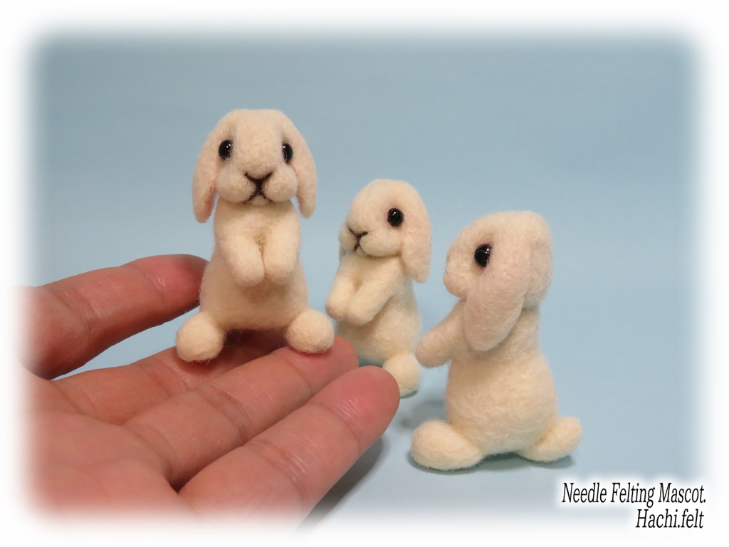 うさぎ追加 25 制作記 X Facebook LINE Pinterest コピー 2023.10.04 立ち耳の赤目と黒目。そしてロップイヤーの赤目、ときたら黒目も作らないとね🐰って訳でロップイヤーの黒目さんです☆ 白一色って私の中では結構難しかったりする。単色だしさっと作れそうな感じではあるんですけど、なぜか分からないけど思った形にならない事がよくある。そういう時は止めて次の日までほったらかしなのだ💦ひょっとして私は白一色って苦手?😑 ミニ茶々丸 白うさちゃん誕生と同時に 白羊毛がドカッと減る☆ ミニ八兵衛 また白羊毛仕入れとかないとね♪