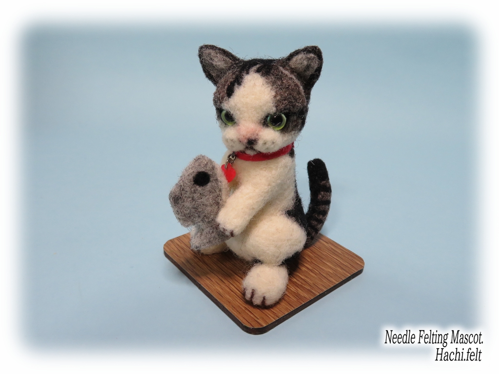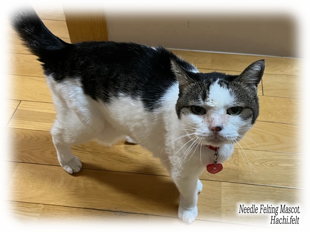 ミーちゃん、赤いハートのプレートが付いた首輪を着けて貰ってます。このハートのプレートが迷子札になってました、なので今回はこの首輪も出来るだけ似せて作ってます。文字無しで形だけですけどね。