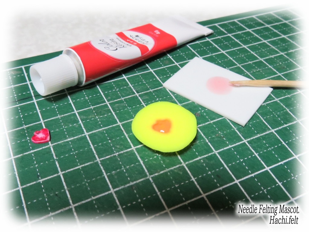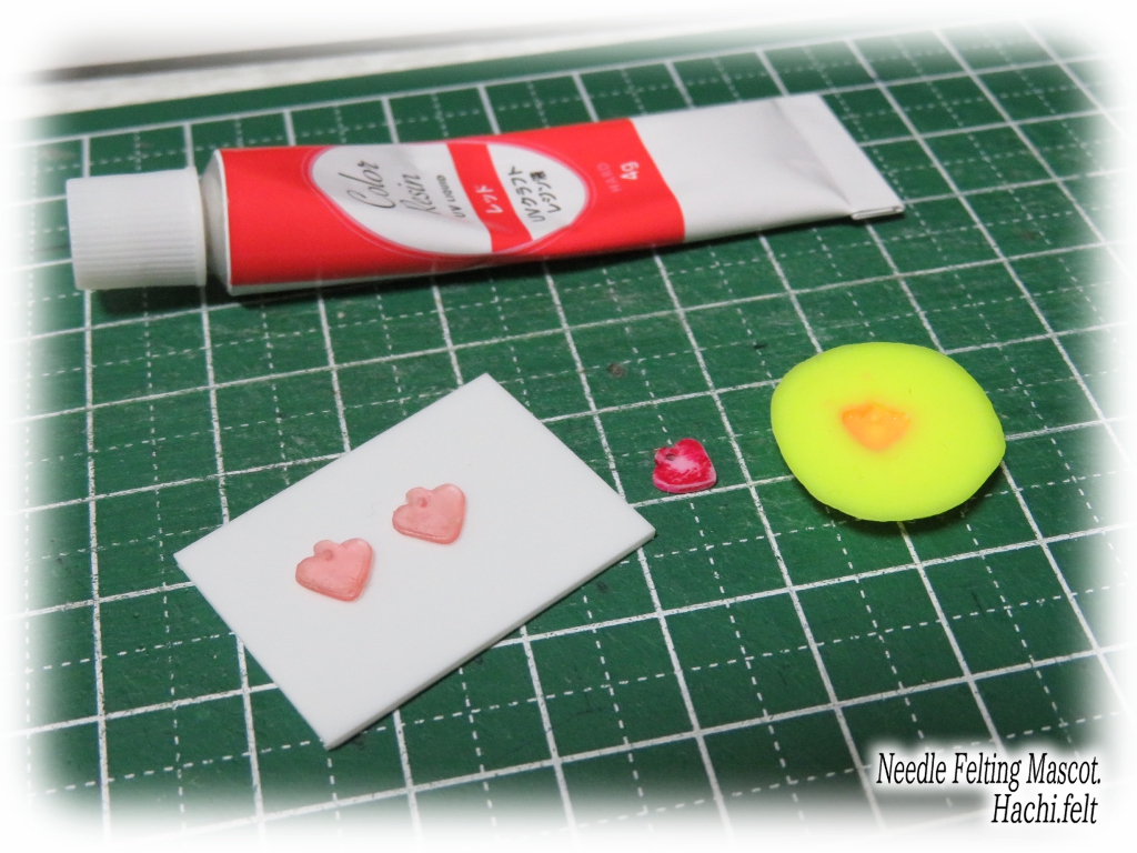 赤のマーカーでレジンの裏側だけ塗ってます、色は透過するんで裏だけ塗る方が表から綺麗に見えます。