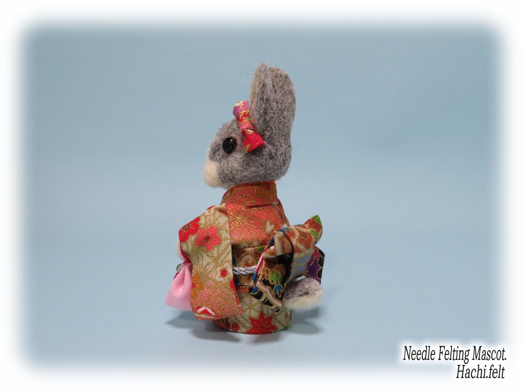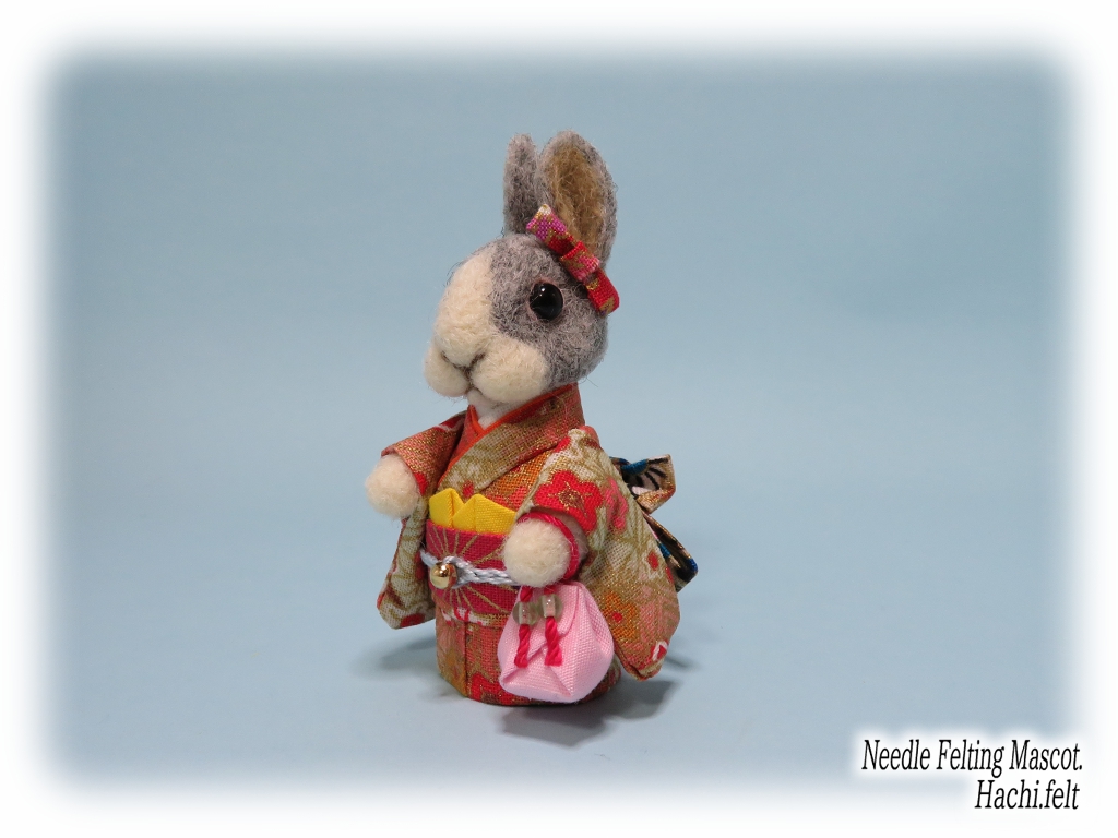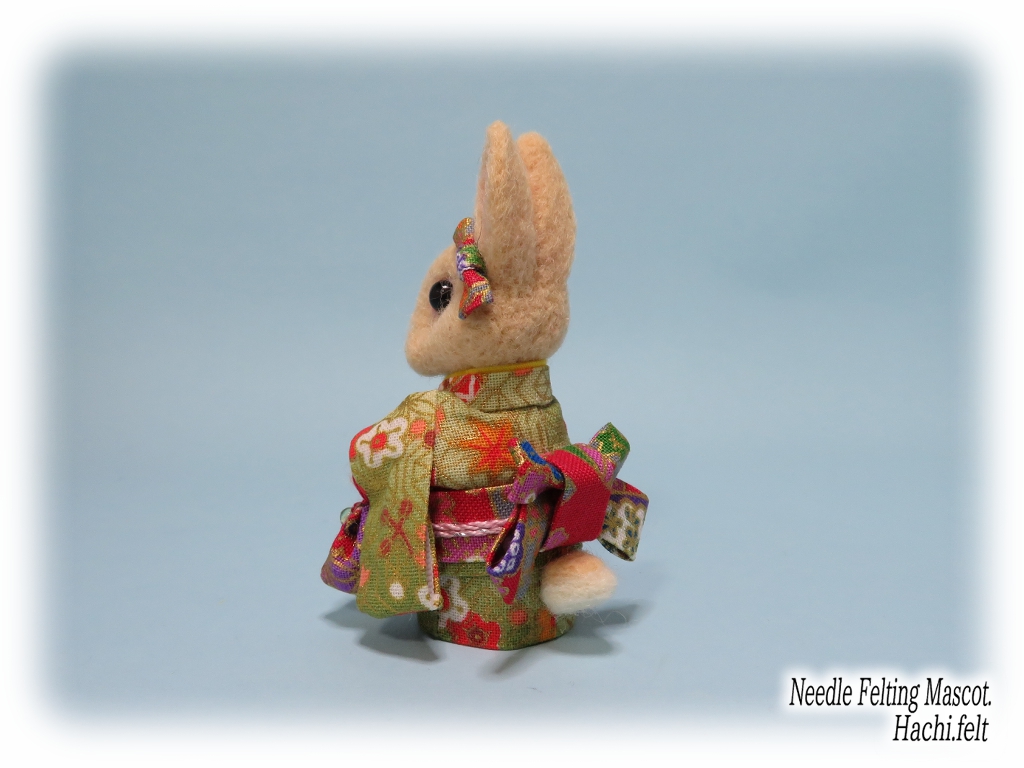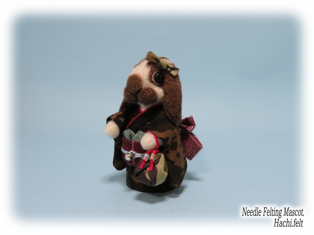 着物うさぎの追加です🐰👘今回も3羽作りました。立ち耳淡オレンジ、ロップブロークン茶、ダッチ淡グレー。とりあえず京都マルシェに出す着物うさぎは前回のも合わせて6羽で☆
