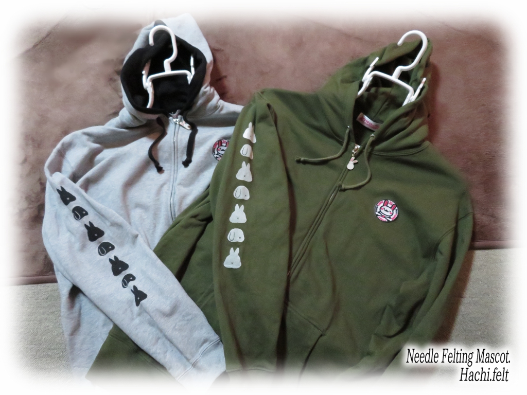 で、冒頭で言ってたお目当てのもの!ウサロックさんのパーカー✨めっちゃ欲しかったグリーンをゲットしてきました🤩ファスナーに付いたうさぎチャームに袖に並んだうさ顔、胸のワッペンがカワイイね☆相方はグレーを買いました✨