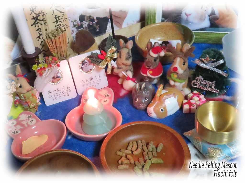 ケーキは美味しかったよん🐰🍰☕🐰画像では見えてないけど祭壇にはこっそり、かりんとう饅頭もお供えしてある✨皆でお食べ☆