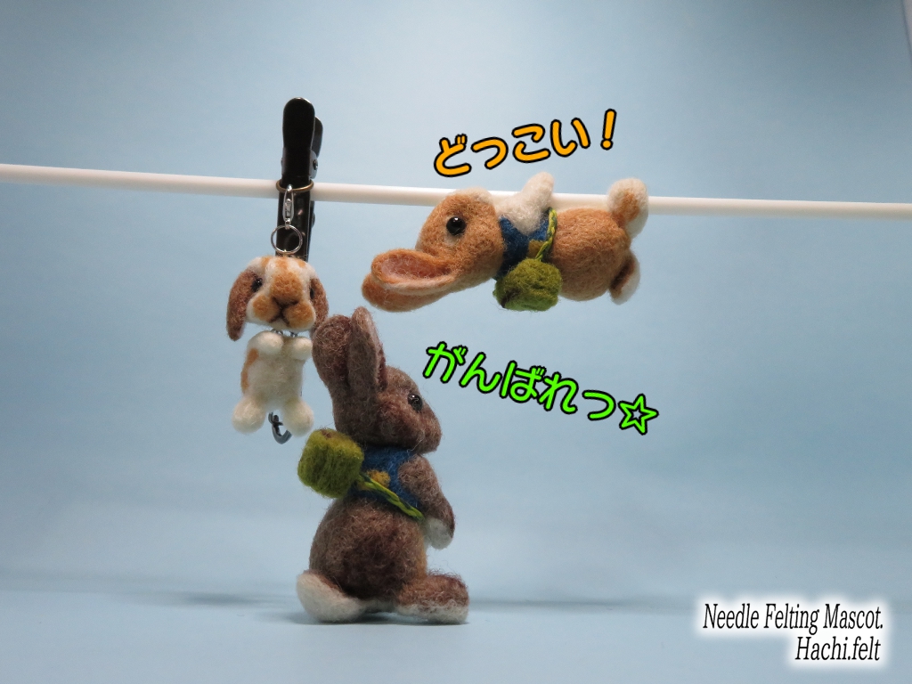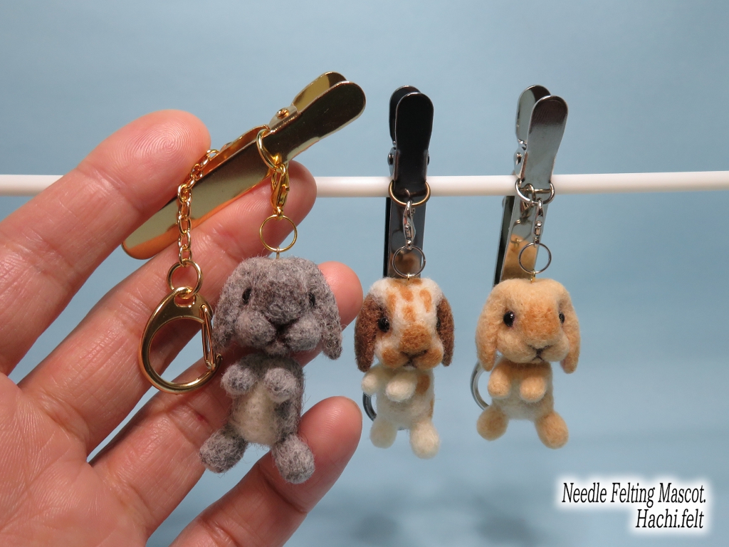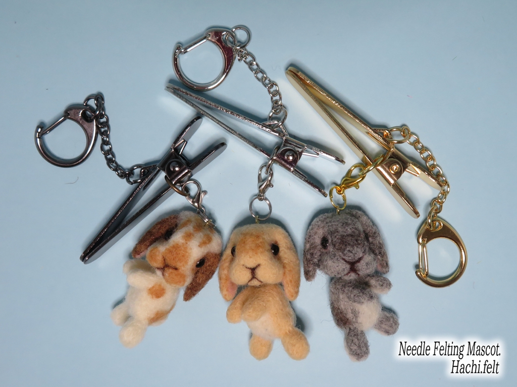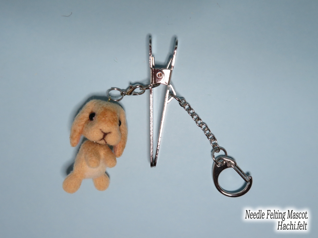 前回と仕様変更した部分があって、クリップを真ん中にキーチェーンとうさぎが内と外になる様に加工しました。