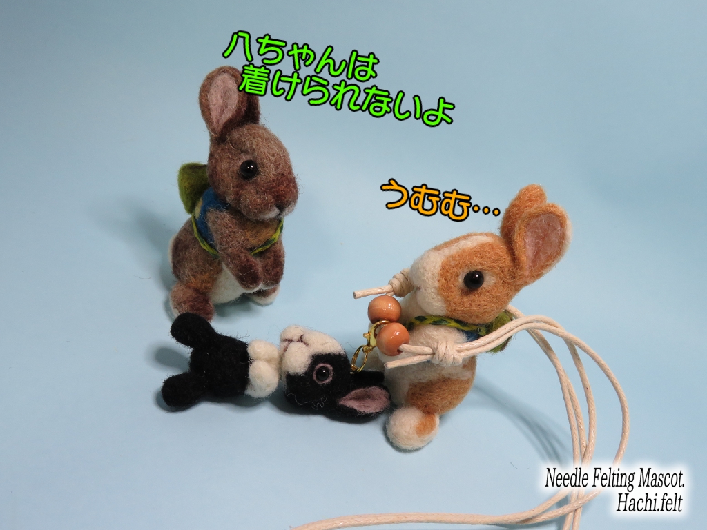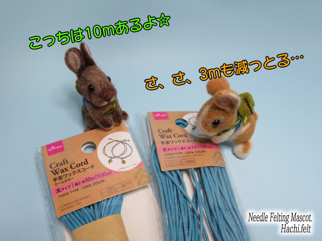 うさぎの作りとかは基本変わってないのですが紐は変更しました、前に使ってたのはスエード調の手芸紐ってのを使ってたんですけど。