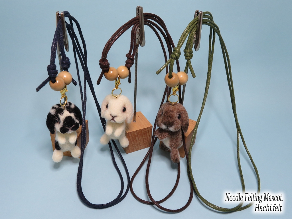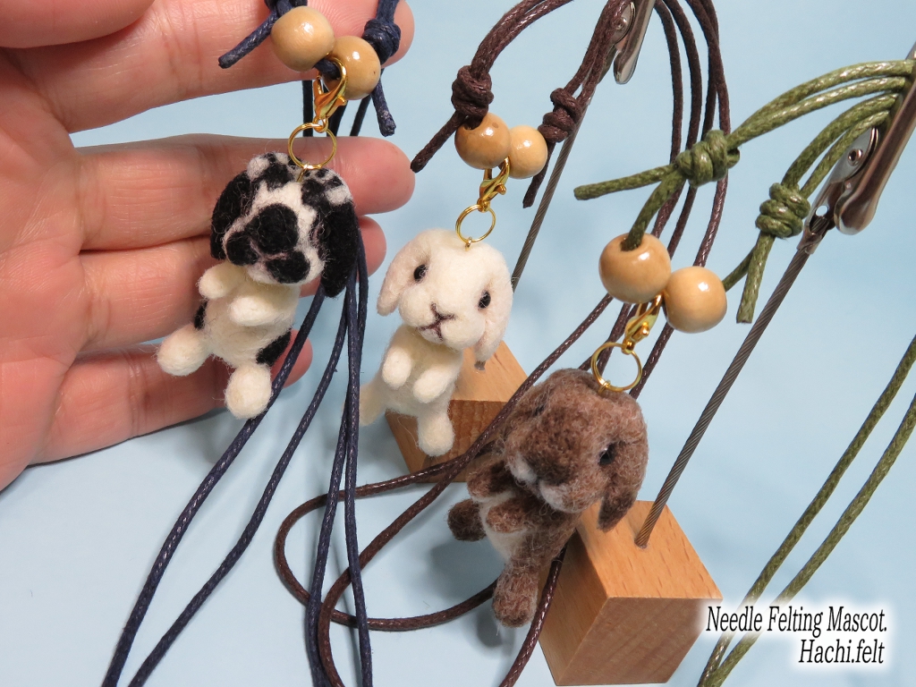 うさぎ追加 37 制作記 X Facebook LINE Pinterest コピー 2024.02.28 紐ネックレス、ロップイヤー組🐰 前回のと合わせてこれで6羽分出来ました、キークリップと合わせると全部で12羽分。これブースに並べられるかな💦デスクぎりぎりまで使ってもちょっとレイアウト考えないと全部置けないかも☆ ミニ茶々丸 ブラブラする子達だから ディスプレイは吊り下げ がいいね☆ ミニ八兵衛 デスクのスペース見ても ひな壇一つ改造しないと ダメかもね☆
