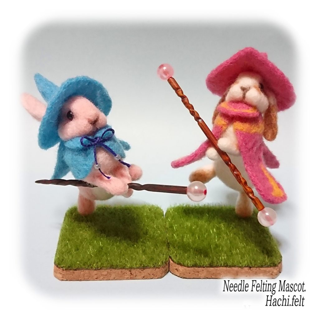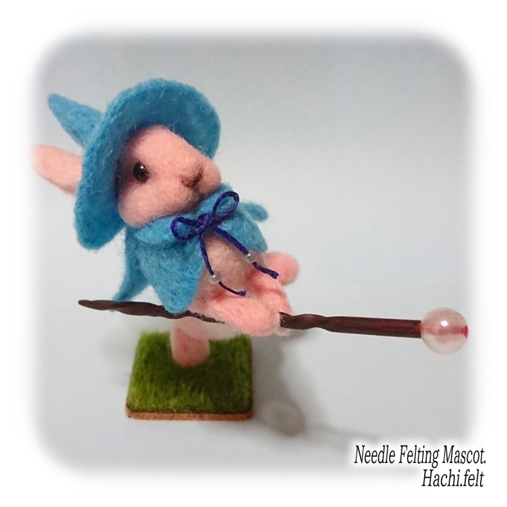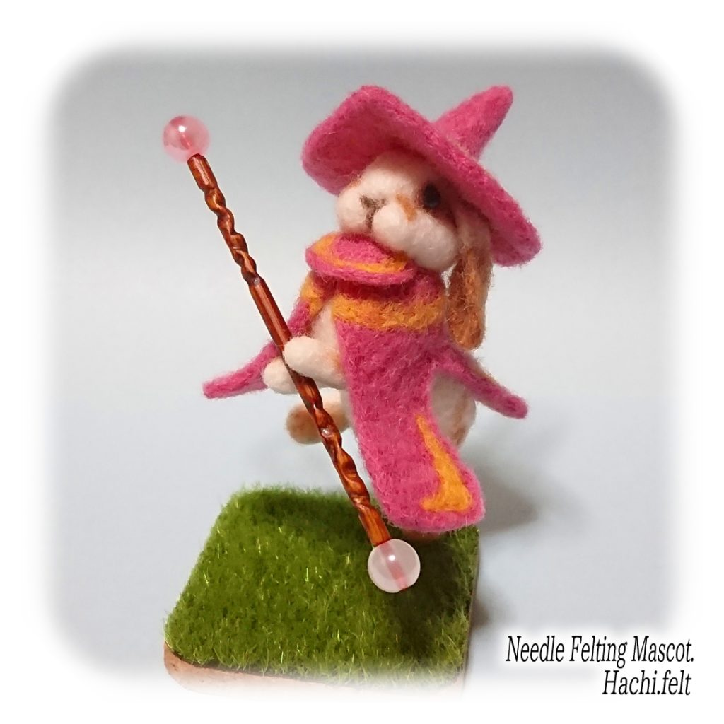 うさぎの魔法使いってこんな感じかなと作ったモデル。杖は3mmの竹ひごを削って先にビーズを差し込んで作ってます。