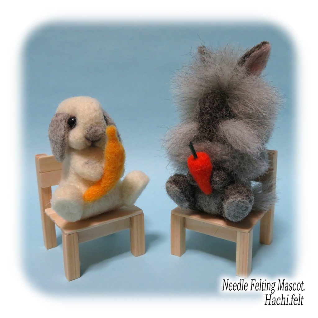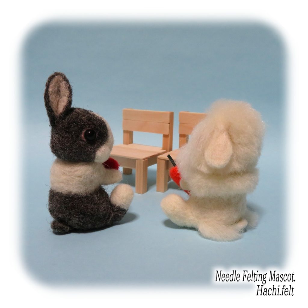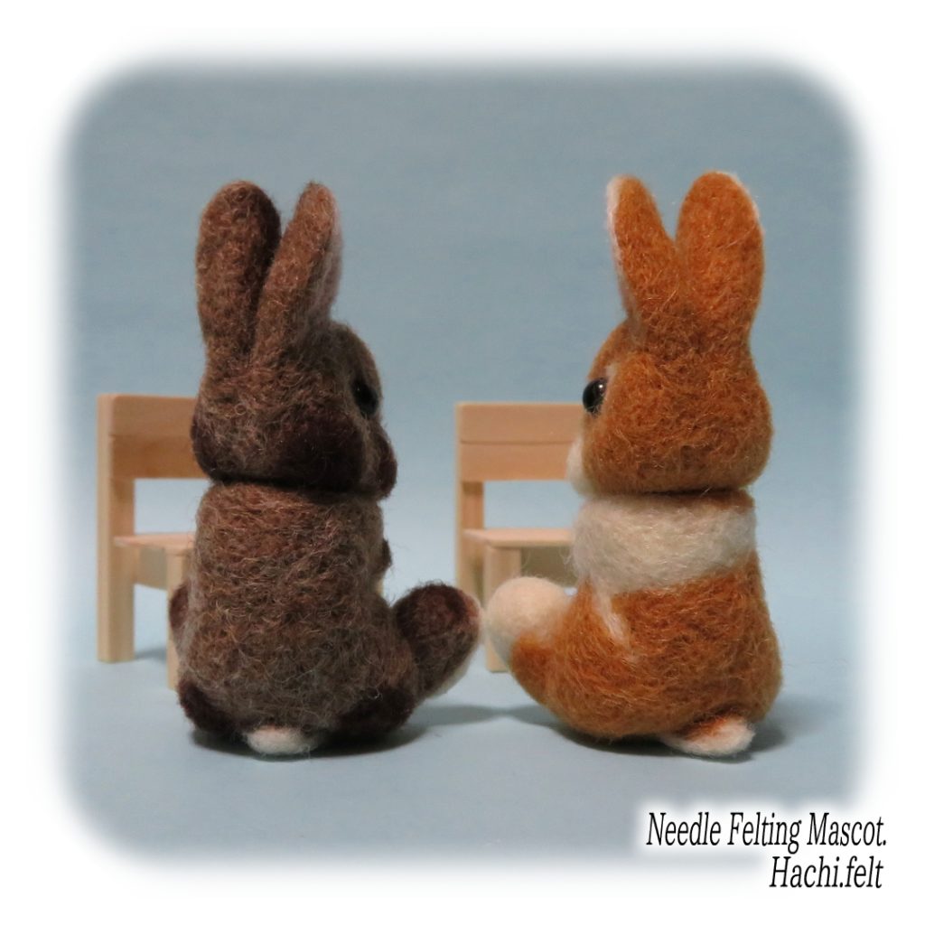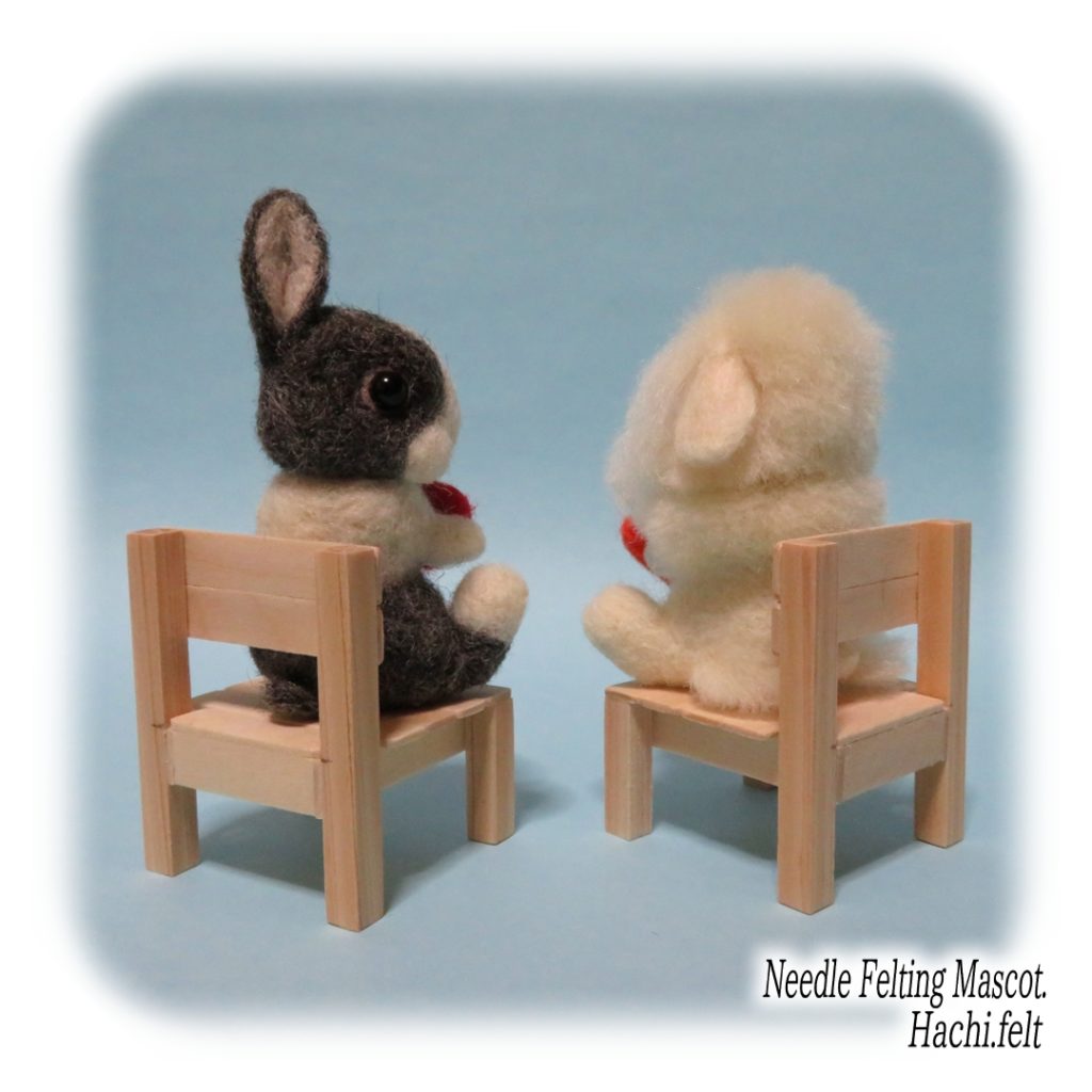 お座りうさぎの試作。椅子もセットで作ってみましたけど、私的には地べたに座った後ろ姿が好きだったりする😆