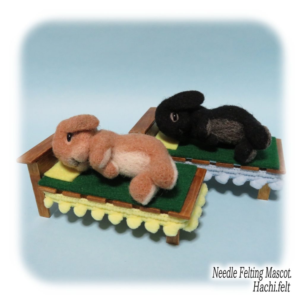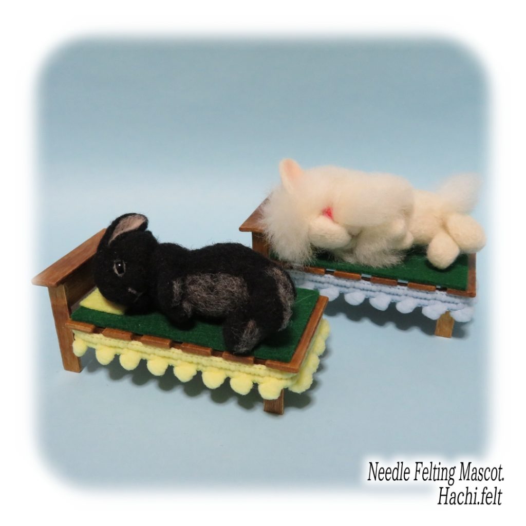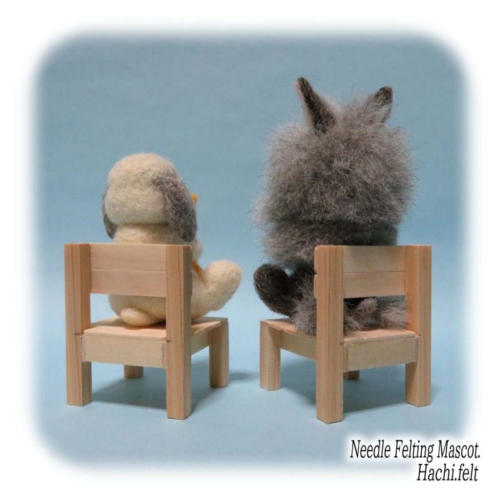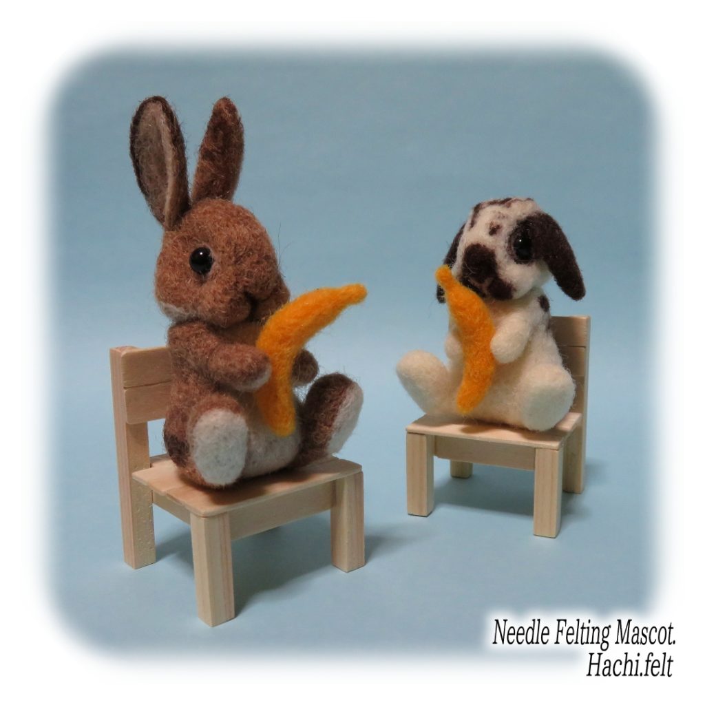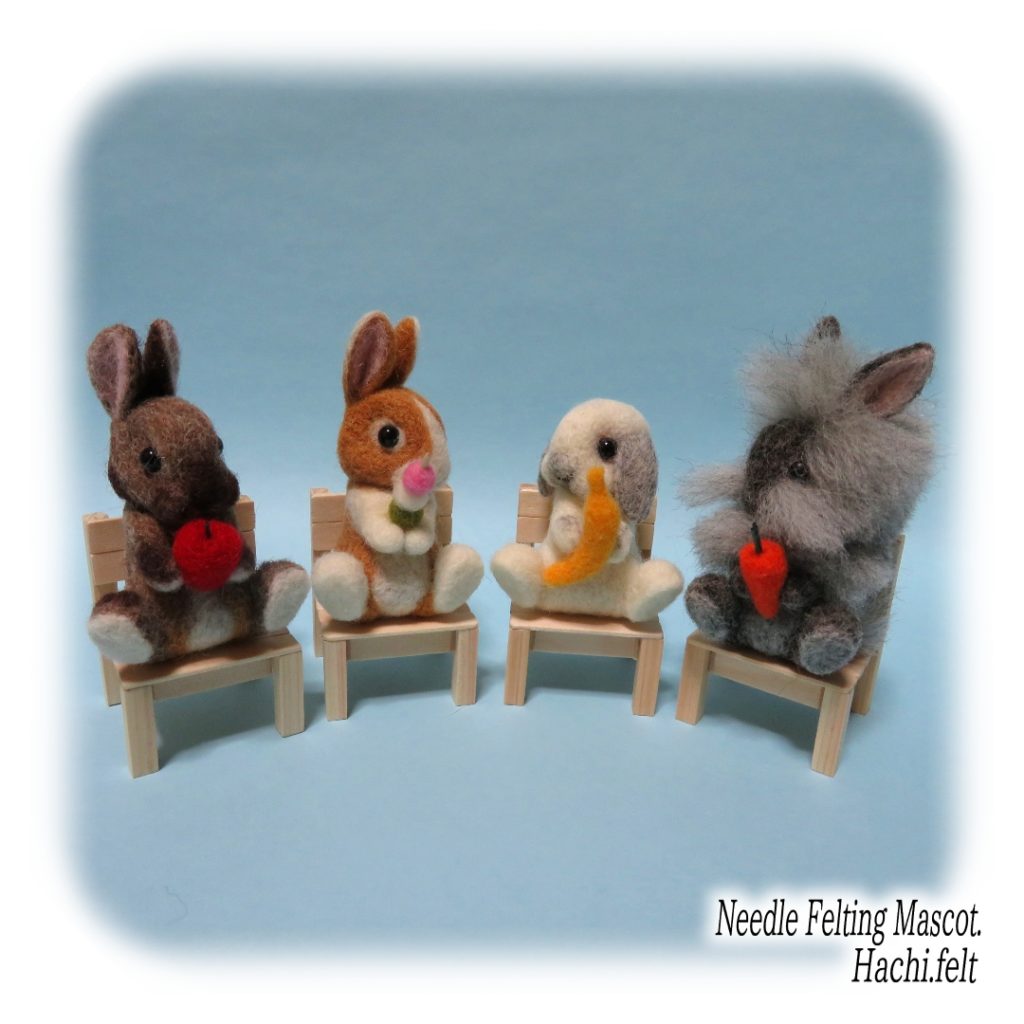 お座りうさぎの試作。椅子もセットで作ってみましたけど、私的には地べたに座った後ろ姿が好きだったりする😆